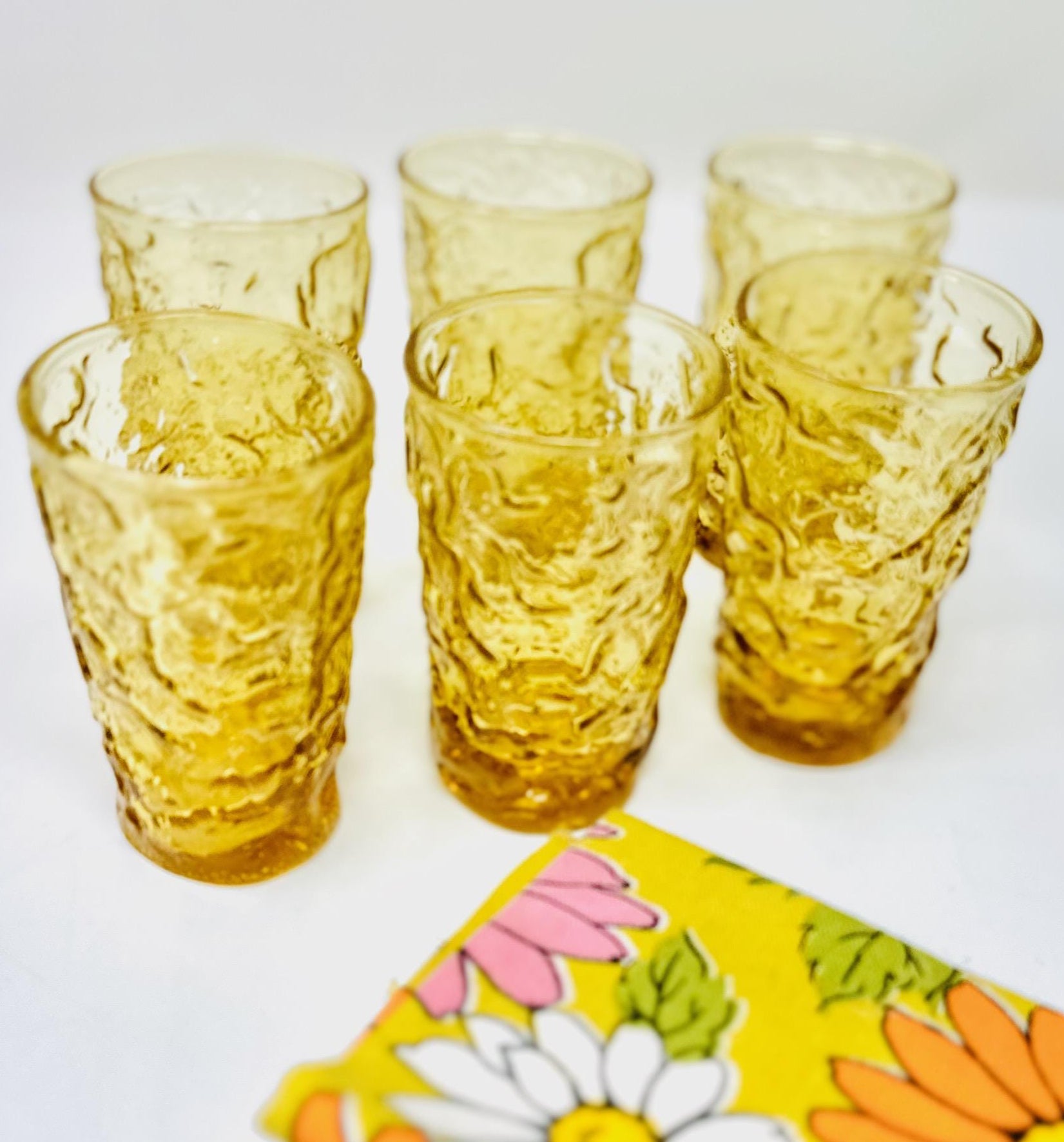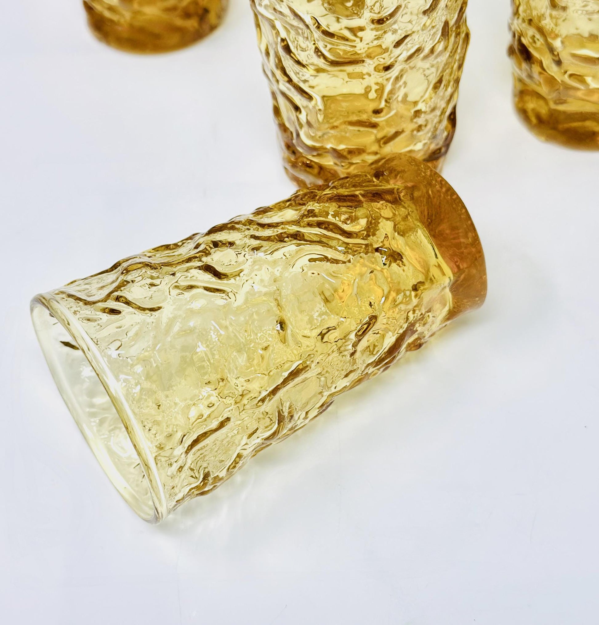 Anchor Hocking, Lido Milano, Six Juice Tumblers, Honey Gold Amber Glass, Lancaster Ohio, 1970s